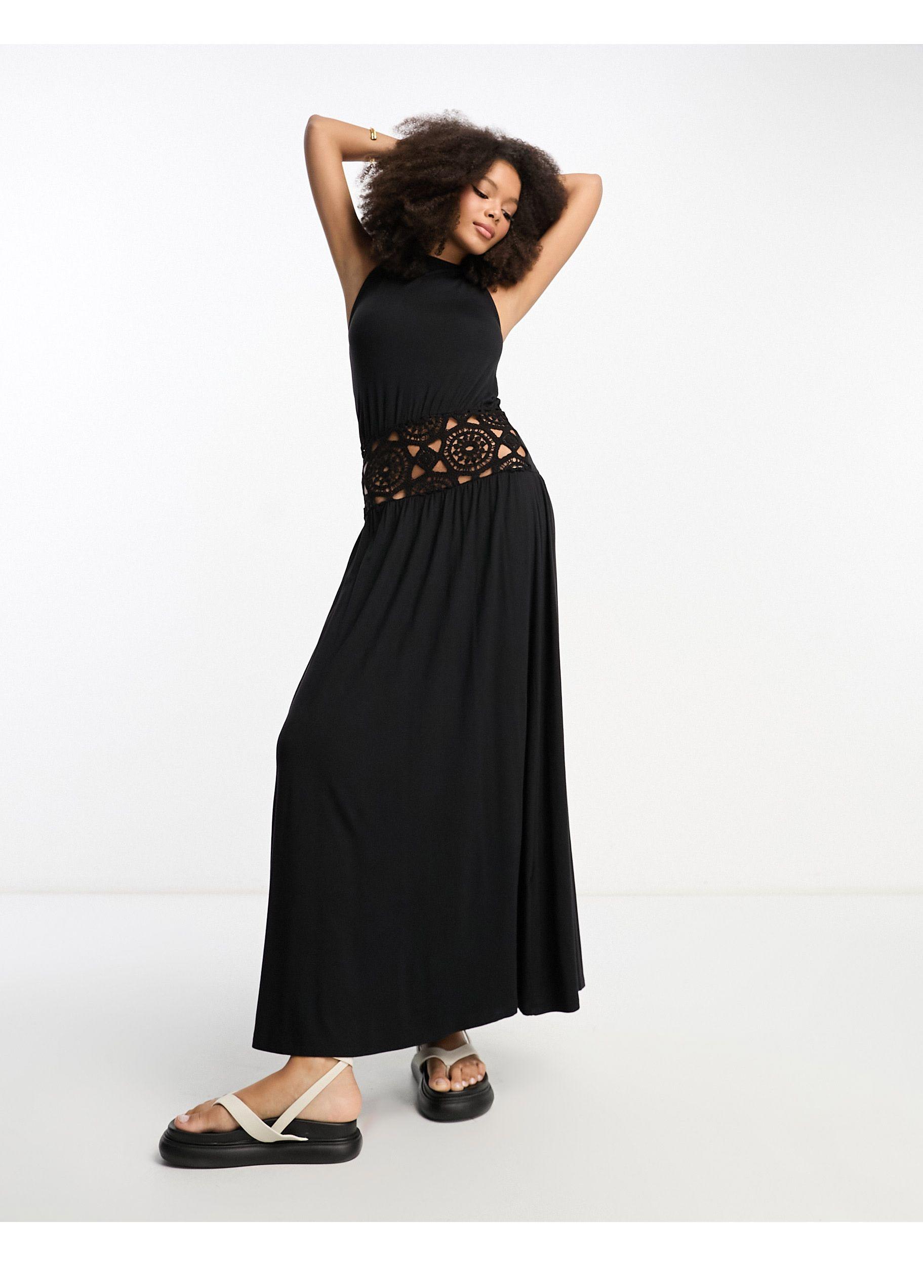 Asos Halter Neck Midi Dress With Crochet Bodice In White Lyst Uk